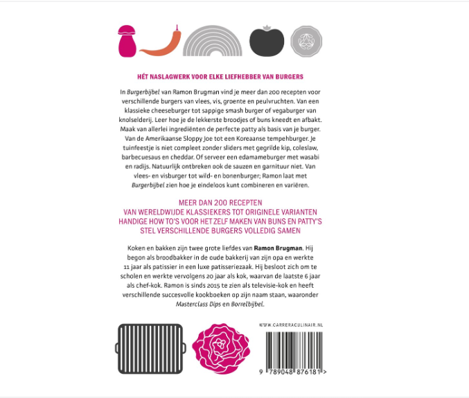 meer dan 200 recepten voor verschillende burgers van vlees, vis, groente en peulvruchten. Van een klassieke cheeseburger tot sappige smashburger of vegaburger van zoete aardappel.